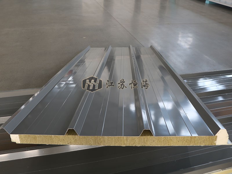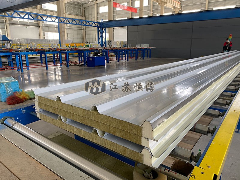 該板由高品質(zhì)彩涂鋼材連續(xù)冷彎成型,中間注入保溫阻燃型聚氨酯液體,經(jīng)高壓混合、發(fā)泡、固化等工藝加工后,芯材與面材強(qiáng)力復(fù)合而成。整套生產(chǎn)流程由聚氨酯連續(xù)自動(dòng)生產(chǎn)線在線完成。